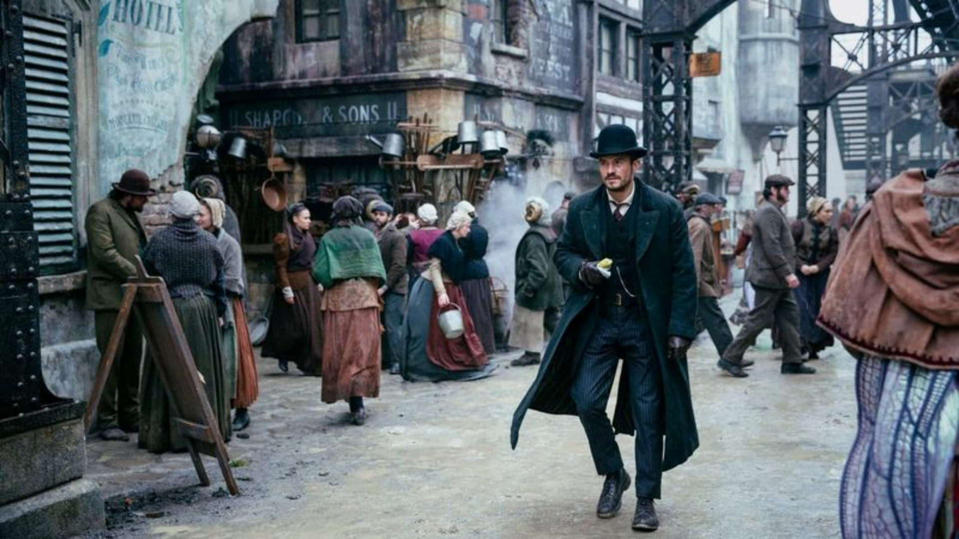 Carnival Row ma dość prostą fabułę. Mamy inspektora Rycrofta Philostrate’a (Orlando Bloom) oraz Vignette Stonemoss (Cara Delevingne). Od początku wiadomo, że tych dwoje coś łączy, ale poznajemy ich już dawno po zakończeniu związku, który zapewne byłby udany, gdyby nie rozdzieliła go wojna. Związku tym bardziej dziwnego, że on jest człowiekiem, a ona wróżką. Bohaterowie nie są sobie obojętni, ale ich przeszłość – zarówno wspólnie przeżyta, jak i lata spędzone osobno, sprawiają, że nie wpadają sobie w ramiona ot tak.